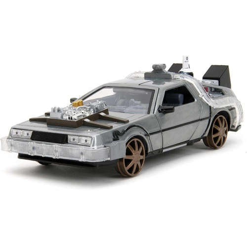 DE LOREAN "BACK TO THE FUTURE III" RAILROAD WHEELS W/LIGHTS TRY ME 1:24 Jada Toy