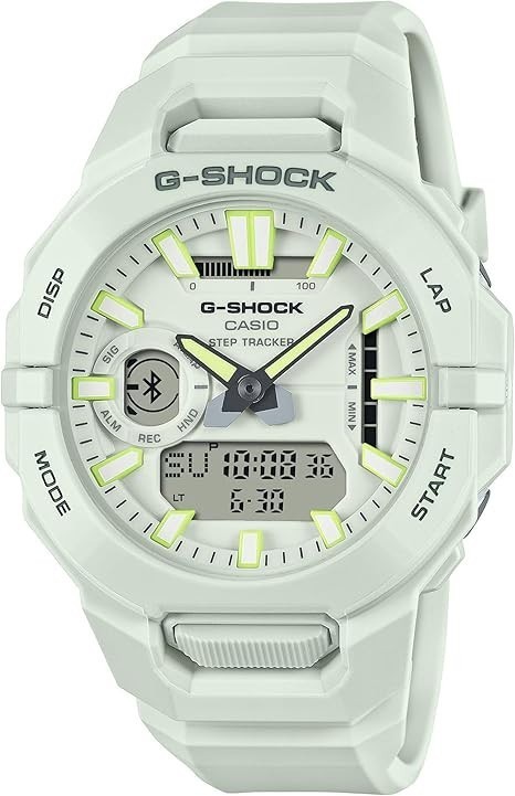Montre CASIO G-SHOCK, Résistante aux chocs, Multifonctions, Bluetooth Smart, Double Affichage, Étanche 20 ATM, Blanc