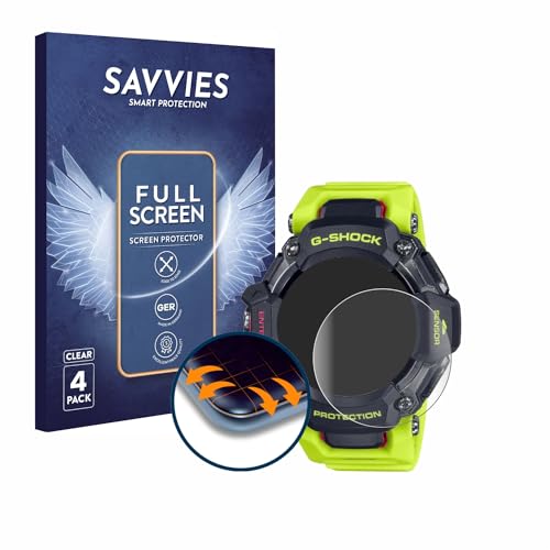 savvies 4 Pièces Full-Screen Ecran Protection pour Casio G-Shock GBD-H2000 Full Cover Film Protection 3D Curved [Couverture Complète, Transparente]