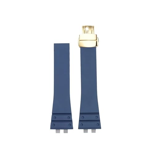 Bracelet de montre en caoutchouc fluoré Compatible avec CASIO G-shock GMW-b5000 3459 à petits carrés peut être raccourci(Blue-gold buckle)