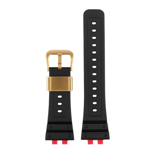 Bracelet de montre en caoutchouc fluoré Compatible avec CASIO G-shock GMW-b5000 3459 à petits carrés peut être raccourci(Black-gold buckle)