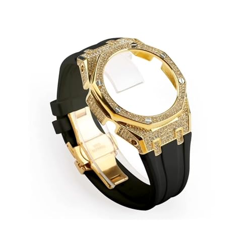 Compatible avec Casio G-SHOCK GA-2100 GA2110 GA-B2100 GMA-S2100 boîtier en acier inoxydable+bracelet en caoutchouc(Gold Black,For GMA-S2100)