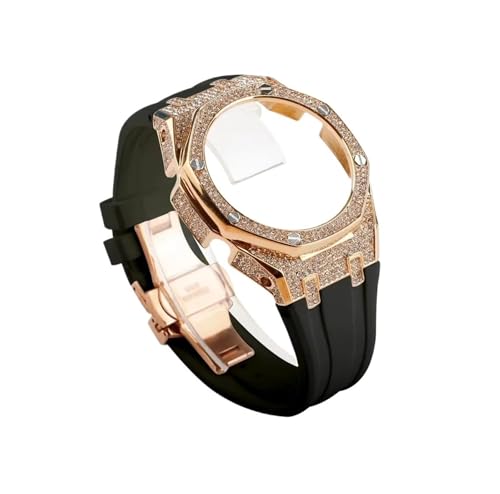 Compatible avec Casio G-SHOCK GA-2100 GA2110 GA-B2100 GMA-S2100 boîtier en acier inoxydable+bracelet en caoutchouc(Rose gold Black,For GA-2100 2110 B2100)