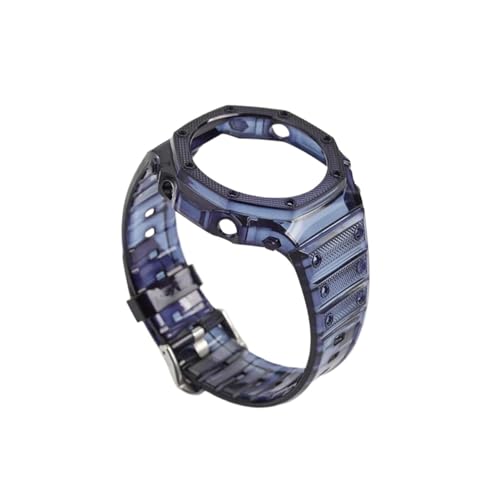 JVEIWAD Boîtier en caoutchouc transparent + bracelet compatible avec Casio G-SHOCK GA-2100 Modification de la mode Bleu Rouge Gelée Remplacement Bordure Bracelet de montre de sport(Royal blue)