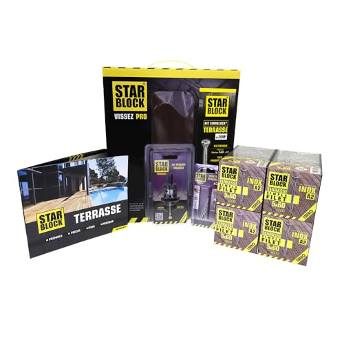 Starblock Kit de construction terrasse 25m² : 1 000 vis inox A2 5x60, gabarit de perçage, 1 kit perçage-fraisage et 3 bandes d'étanchéité