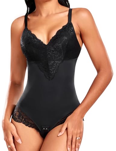 Niwicee Body Femme Ventre Plat Bodysuit Sculptant Minceur Shapewear Gaine Amincissante Invisible Corset Corps Bodysuit Contrôle du Ventre Lace Lingerie Top-Noir-M