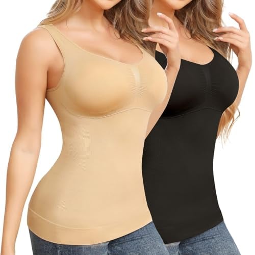 Joyshaper Hauts sculptants Femme Débardeur Gainant Ventre Plat Gaine Amincissante Tanks Top Body Shaper Noir+Beige M
