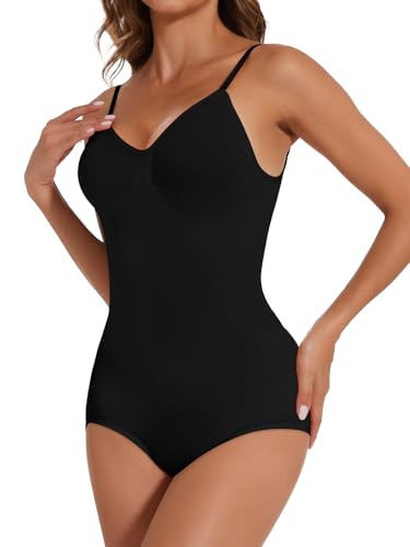 Niwicee Body Femme Gaine Ventre Plat Body Gainant Femme Bodysuit Shapewear Bodys Shaper Sculptant Amincissant Invisible Minceur Spaghetti Strap Lingerie Justaucorps Moulante Corps-Noir-M