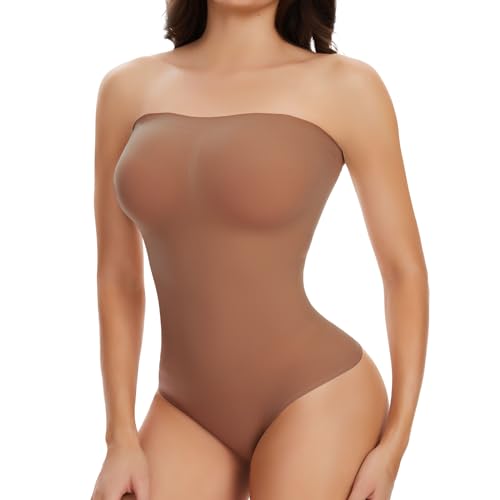 Joyshaper Body Sculptant Femme sans Bretelles Shapewear Bodysuit Body Gainant Ventre Plat Gaine Amincissant Brun XL