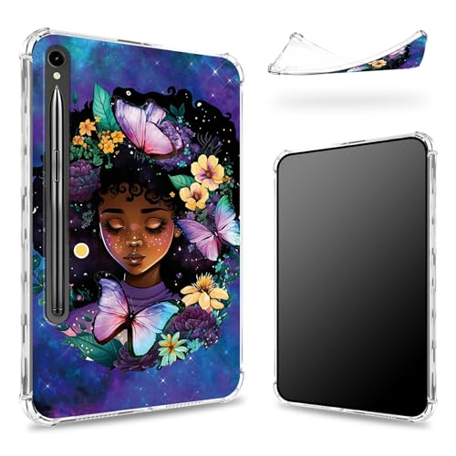 Coque souple pour Samsung Galaxy Tab S9 11" 2023 (SM-X710/716B/718U) avec porte-stylo S, dos transparent avec jolie fille galaxie, coque de protection d'angle avec béquille rigide