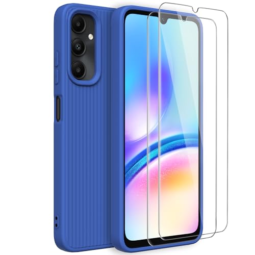 BUTISHIYU Coque Compatible avec Samsung Galaxy A05s avec 2 Pièces Verre Trempé, Housse Souple en TPU en Silicone Liquide Antichoc, Etui Bumper Case Samsung Galaxy A05s 4G, Bleu