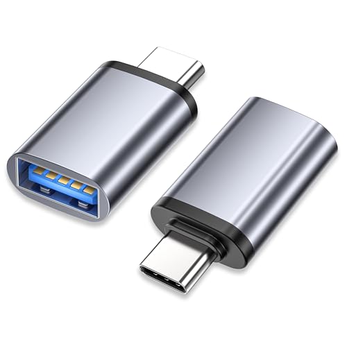 JSAUX Adaptateur USB C vers USB 3.0 [Lot de 2] Câble OTG USB Type C Mâle vers USB A Femelle Compatible avec iPhone 16 Pro Max/15 Pro Max Plus, iPad Pro, MacBook Pro/Air, Galaxy S24/S23/S22 Ultra-Gris