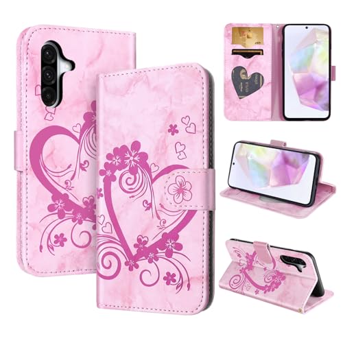 CASAFUNY Coque pour Samsung Galaxy A36 5G Housse Etui Portefeuille Protection Housse Fermeture Magnétique Etui à Rabat pour Samsung A36 5G, Rose
