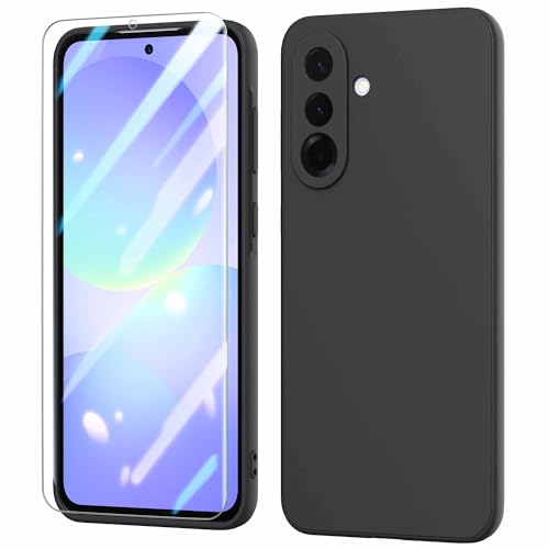 BUTISHIYU Coque pour Samsung Galaxy A36 5G Case avec Protecteur D'écran en Verre Trempé,Housse Doublure Douce en Tissu Microfibre Anti-Chocs Coque Compatible avec Samsung Galaxy A36 - Noir