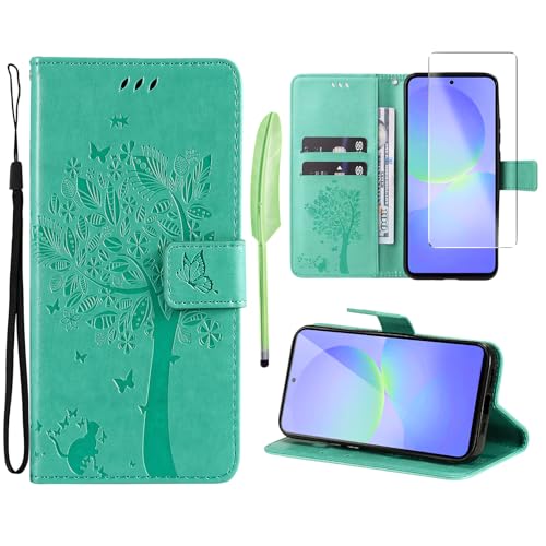 Oududianzi - Coque pour Samsung Galaxy A36 5G [1X Verre Trempé] Étuis Rabat Folio Protection Housse Cuir PU Portefeuille Silicone [Fermeture Magnétique][Emplacements Cartes][Stand Feature]-Vert