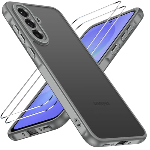 iVoler Coque Mat pour Samsung Galaxy A36 5G avec 2 Pièces Verre Trempé, [Protection Antichoc Militaire] [Protection Caméra] Arrière Translucide Étui de Protection Mince Bumper Housse, Gris
