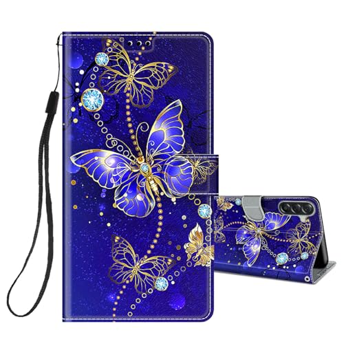 HopMore Coque pour Samsung Galaxy A36 5G Etui à Rabat Housse de Protection Étui en Cuir PU Pochette de Portefeuille Cover avec Motif Magnétique Case pour Samsung A36 5G, Papillon Bleu