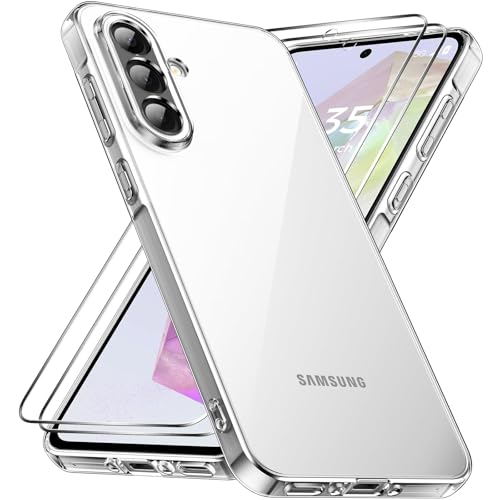 ivoler Anti-Jaunissement HD Clair Coque pour Samsung Galaxy A36 5G avec 3 Pièces Verre Trempé, [Protection Militaire] Transparente Étui de Protection Antichoc avec Coins Renforcés Mince Bumper Housse