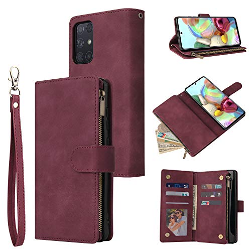 UEEBAI Coque pour Samsung Galaxy A72 4G, Etui en Cuir PU Portefeuille Rétro Antichoc Flip Case Housse avec Fentes de Cartes Fonction Support, Fermeture Magnétique - Vin Rouge