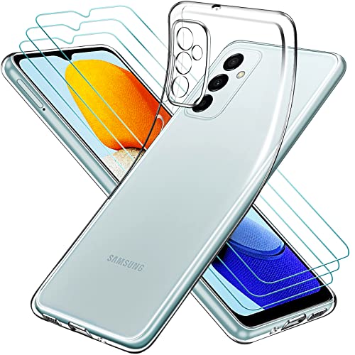 ivoler Coque pour Samsung Galaxy M23 5G avec 3 Pièces Protection Écran en Verre Trempé, Transparent Étui de Protection en Silicone Antichoc, Clair Mince Souple TPU Bumper Housse