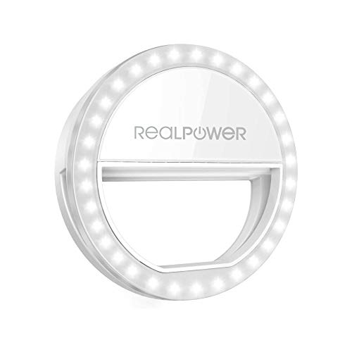 RealPower Eva Selfie Light, 36 LED Anneau Lampe Selfie Lumière pour téléphone portable, Selfie Ring Light – Luminosité réglable sur 3 niveaux Compatible avec iPhone, Samsung Galaxy, Huawei et beaucoup d'autres Smart