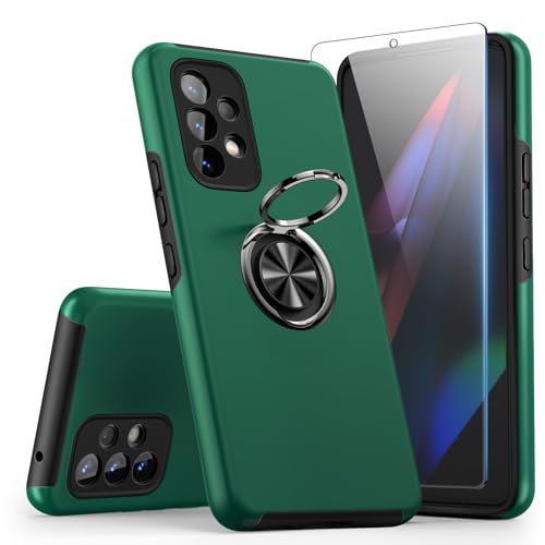 KRAFTCARE pour Samsung Galaxy A53 5G Housse avec 1 Pack de Protection en Verre blindé Case avec 360° Ring Ständer Housse pour téléphone Portable Housse Antichoc pour Samsung A53 5G,DarkGreen