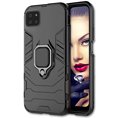 NEINEI Coque pour Samsung Galaxy A22 4G,Etui de Protection la Caméra en PC Dur avec [Magnétique Ring Support][Silicone Bumper],Housse de Militaire Renforcée Défense Case,Noir