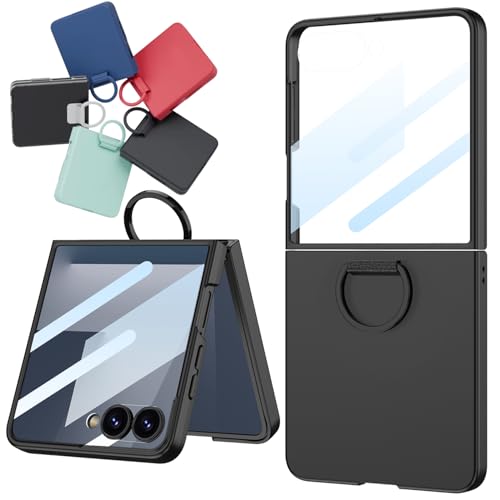 WATACHE Designed for Samsung Galaxy Z Flip 4 Case Clear with Ring, Anti-Fall Shockproof Protective Phone Cover Case Compatible with Galaxy Z Flip 4 Case 5 G 2022 (Noir)