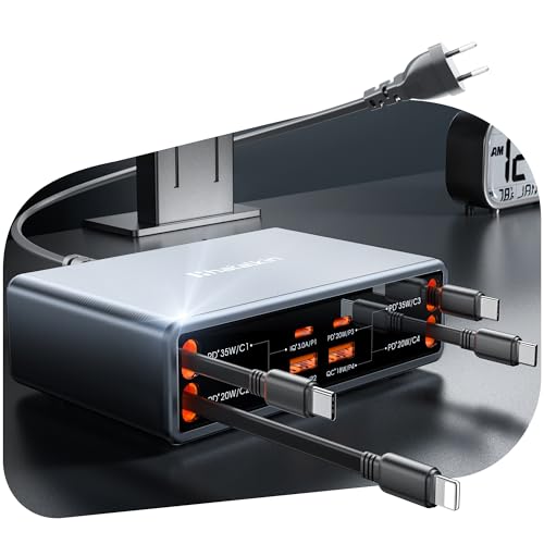 HATALKIN Station de Charge USB C 105w Retractable Multi Chargeur 8 Ports GAN Chargeurs et Adaptateurs pour iPhone 17/17 Pro/16/15/14/13, iPad, MacBook Air Series/Samsung Galaxy Tab S8 Series