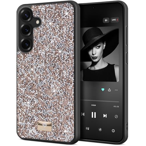 BEZ® Coque pour Samsung S24 Paillette, Coque Compatible avec Samsung Galaxy S24 Glitter, Series de Etuis avec Bling & Co., Étui en Diamant Etincelant et à Cristal Bling, Ambre Or