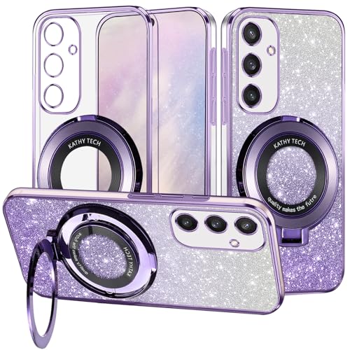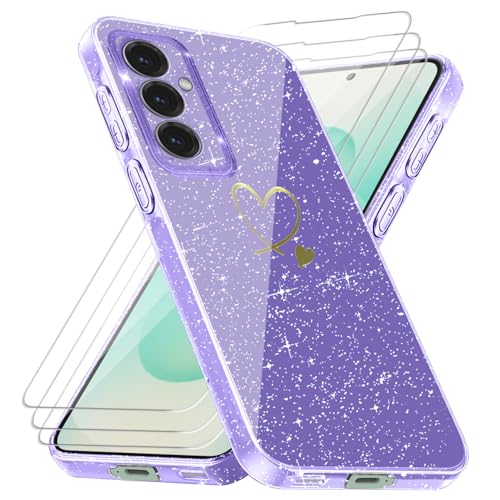 Coque Compatible avec Samsung Galaxy S25 Plus / S25+ 5G (Pas pour S25), 3 Pièces Protection Écran en Verre Trempé, Housse Souple et Transparent, Étui Anti Empreintes et Paillettes - Violet