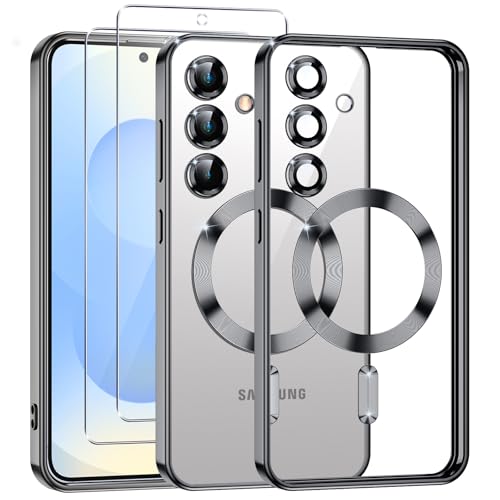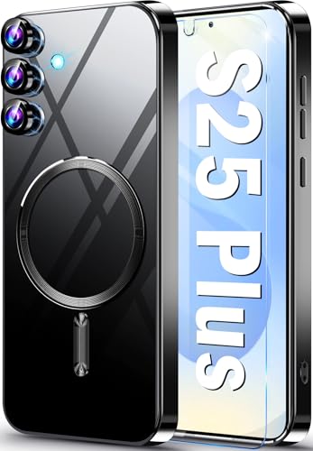 Neivi Coque pour Samsung Galaxy S25 Plus avec Mag-Safe Magnétique, Protection de Caméra, Film de Protection, Transparent TPU Anti-Jaune Souple Bumper Antichoc Coque pour Samsung S25 Plus (Noir)