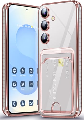 Coque pour Samsung Galaxy S25 Plus 5G, Étui Placage avec Fente pour Carte Protection de la Caméra, S25 Plus Housse Antichoc TPU Silicone Transparente Durable Bumper pour Samsung S25 Plus (Or Rose)