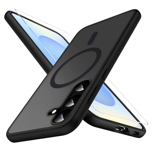 Phoona Coque Magnétique Samsung Galaxy S25 Plus 5G 2 Pièces Verre Trempé, Compatible MagSafe Résistante aux Rayures et Chocs Mince et Transparente Noir