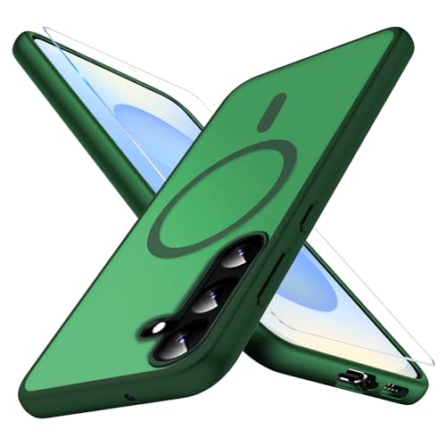 BAFUGU Transparente Coque pour Samsung Galaxy S25 Plus/Samsung Galaxy S24 Plus Compatible avec MagSafe 360 Degré Protection Double Face Integrale Housse Etuis Case avec Protecteur D'écran Film-Vert