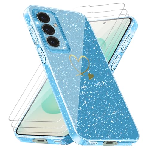 Coque Compatible avec Samsung Galaxy S25 Plus / S25+ 5G (Pas pour S25), 3 Pièces Protection Écran en Verre Trempé, Housse Souple et Transparent, Étui Anti Empreintes et Paillettes - Bleu