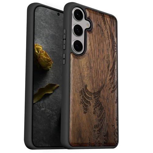 Carveit Coque pour Samsung S25 Plus Étui [Pare-Chocs en TPU Souple] Coque de Téléphone Antichoc Compatible avec Galaxy S25 Plus Etui Bois (Noyer-La Grande Vague au Large de Kanagawa)