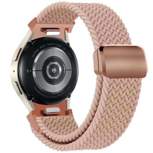 Supore 20mm Bracelet pour Galaxy Watch 7 6 5 4 40mm 44mm, Galaxy 6 Classic/Galaxy Watch 5 Pro 45 mm/4 Classic 42mm 46mm, Magnet Sport Uhrenarmband Elastische Geflochtenes (Rose chair)