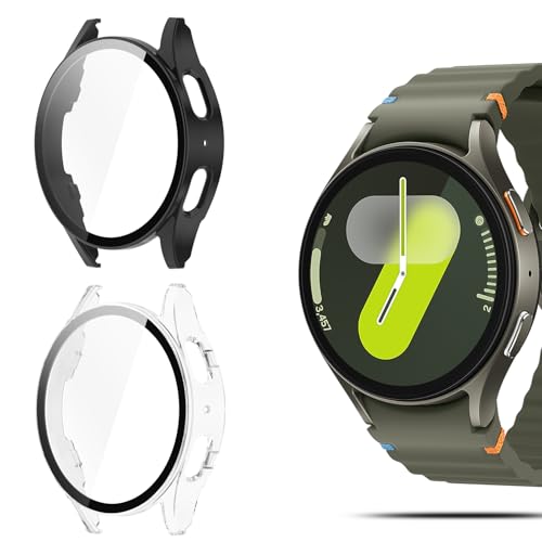 OFFCUP Coque Compatible avec Samsung Galaxy Watch 7 40mm, 2pcs Étui de Protection Complète avec Protection D'écran, Protecteur D'écran en Verre Trempé Coque Anti-Rayures Case (Noir*2)