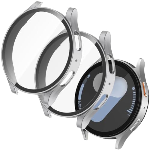 OFFCUP Coque Compatible avec Samsung Galaxy Watch 7 44mm, 2pcs Étui de Protection Complète avec Protection D'écran, Protecteur D'écran en Verre Trempé Coque Anti-Rayures Case (Argent*2)