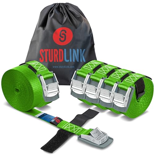 STURDLINK Lot de 6 Sangles d'Arrimage 25mm 250kg avec Boucle à Came et Attache 3m 4m 5m + Sac, pour Fixation et Serrage sur Porte Vélo, Coffre et Galerie de Voiture, Remorque, Déménagement, Loisirs