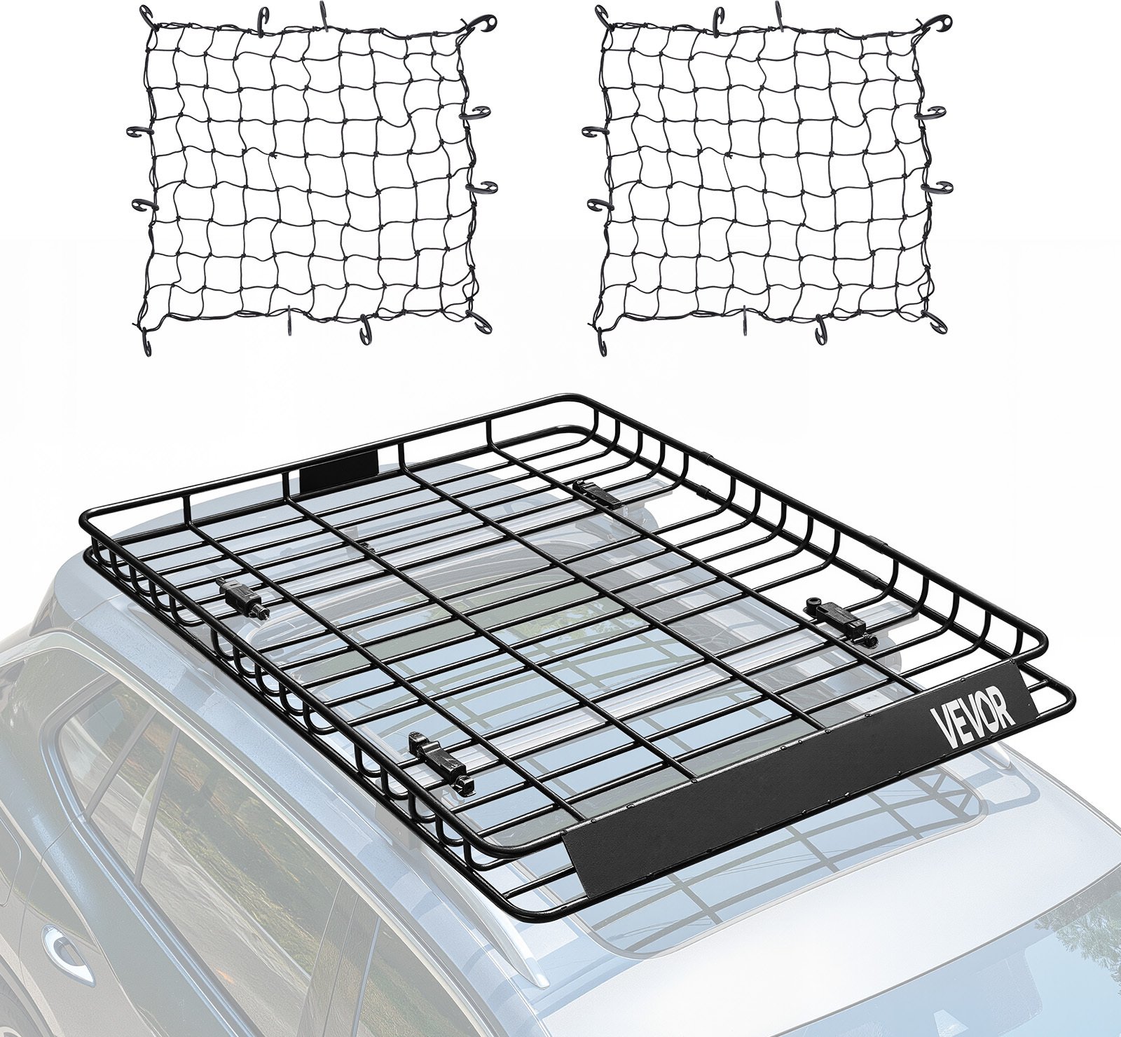 Panier de galerie de toit VEVOR Panier de toit pour voiture (1630 x 1270 x 105 mm) galerie de toit universelle en acier allié inoxydable avec filets à bagages (capacité de charge max. 68 kg), galerie de toit pour voiture SUV poids lourds