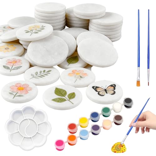 thirei Galets de Peinture Ronds, Lot de 40 Galets De Peinture Lisses, 5 cm Flache Steine zum Bemalen, Galets Plats pour Peinture, Galet a Peindre avec Pigment, Utilisé pour Les Arts, l'artisanat