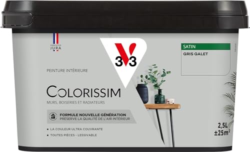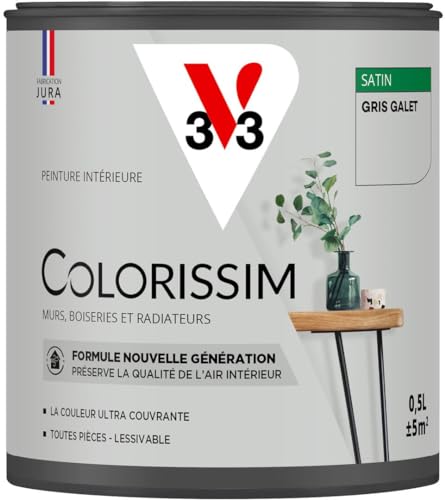 Peinture murs, boiseries et radiateurs gris galet satin V33 Colorissim 0.5 L