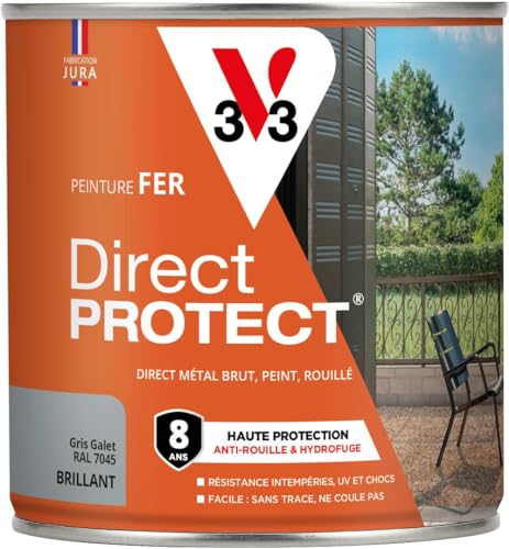 V33 Peinture fer Direct Protect - Gris galet RAL 7045 Brillant - 0,5L