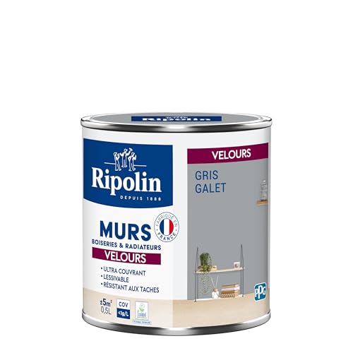 RIPOLIN - Peinture Intérieure Multi-Supports – Murs, Boiseries & Radiateurs – Ultra couvrante - Monocouche - Confort d'application - Aspect Velours - Gris Galet - 0,5L