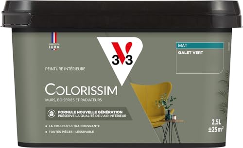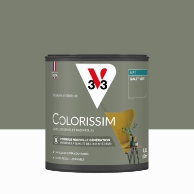 Peinture murs, boiseries et radiateurs gris galet vert mat V33 Colorissim 0.5 L