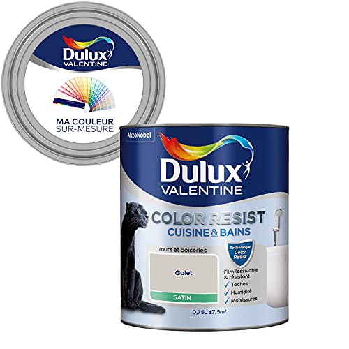 Dulux Valentine Color Resist - Peinture Intérieure Pièces Humides - Pour Murs, Plafonds, Boiseries - Lessivable et Résistante - Couleur : Galet Satin - 2 L - 5261980