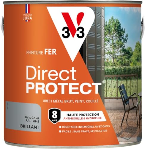 V33 Peinture fer Direct Protect - Gris galet RAL 7045 Brillant - 2L