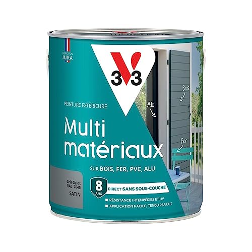 V33 Peinture extérieure Multi-matériaux, Gris galet satin 1,5L